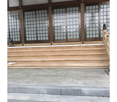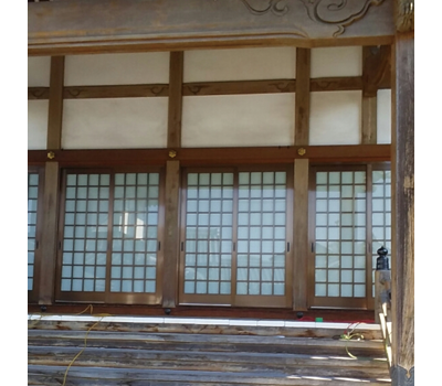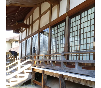 築数十年のお寺にしてはまだまだ新しいお寺さんなのですが 新築時にニスを塗られており、綺麗に成るかとの依頼です。