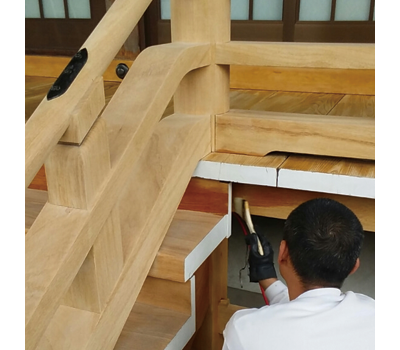 滋賀県栗東市 お寺の白木の灰汁洗い(木部洗い)