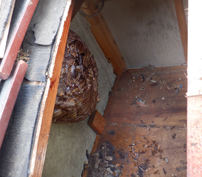 弊社はスズメバチやアシナガバチの生態だけでなく、しろあり施工防除士の資格も有し、社内に建築美装部門を持つ、建物を知り尽くしたハチ駆除業者です。天井裏、壁の中、床の下に作られたハチの巣除去の施工も可能です。