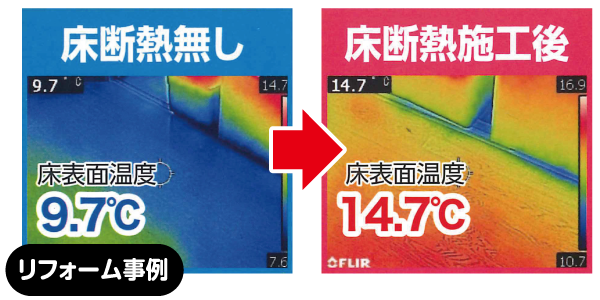 床面の冷気がなくなり、暖房効率のよいお部屋になります。