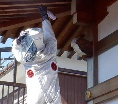 作業中は危険なので近づかないで、経験豊富なスタッフが駆除いたしますので、安心してお任せください。
