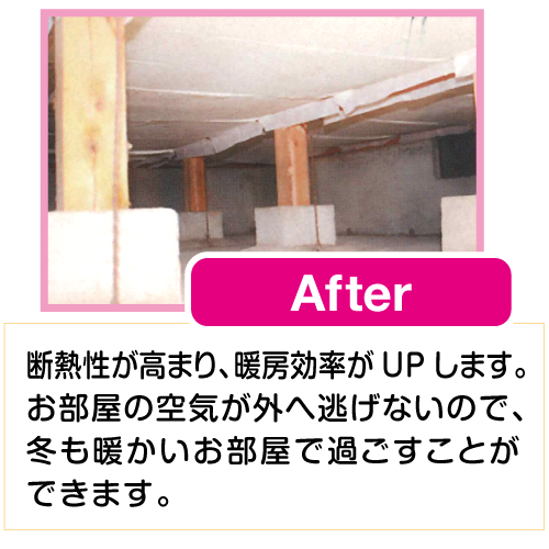 床面の冷気がなくなり、暖房効率のよいお部屋になります。